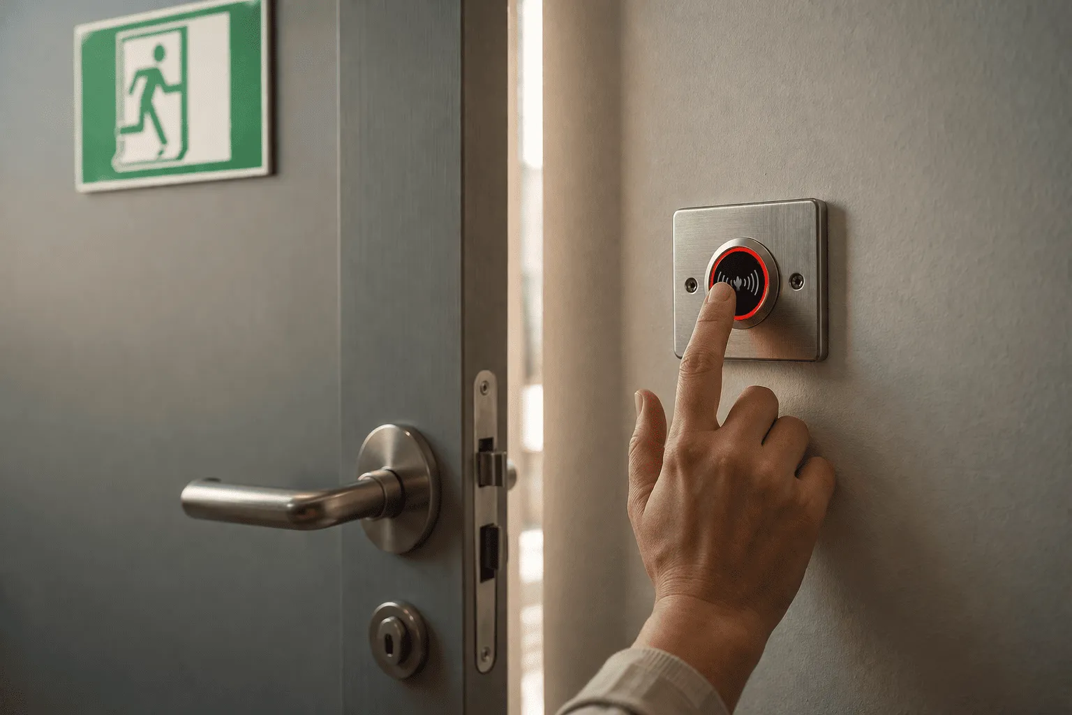 Кнопка выхода — это устройство, которое инициирует размыкание (или замыкание) цепи управления электромагнитным или электромеханическим замком для свободного выхода из помещения. Проще говоря, нажал кнопку — дверь открылась.В большинстве систем контроля доступа действует правило: «вход — по карте/коду, выход — свободно». Это логично с точки зрения безопасности и удобства. Чтобы покинуть здание, не нужно тратить время на идентификацию, достаточно нажать кнопку. Кнопка выхода устанавливается со стороны помещения и подключается либо напрямую к замку, либо к контроллеру СКУД.