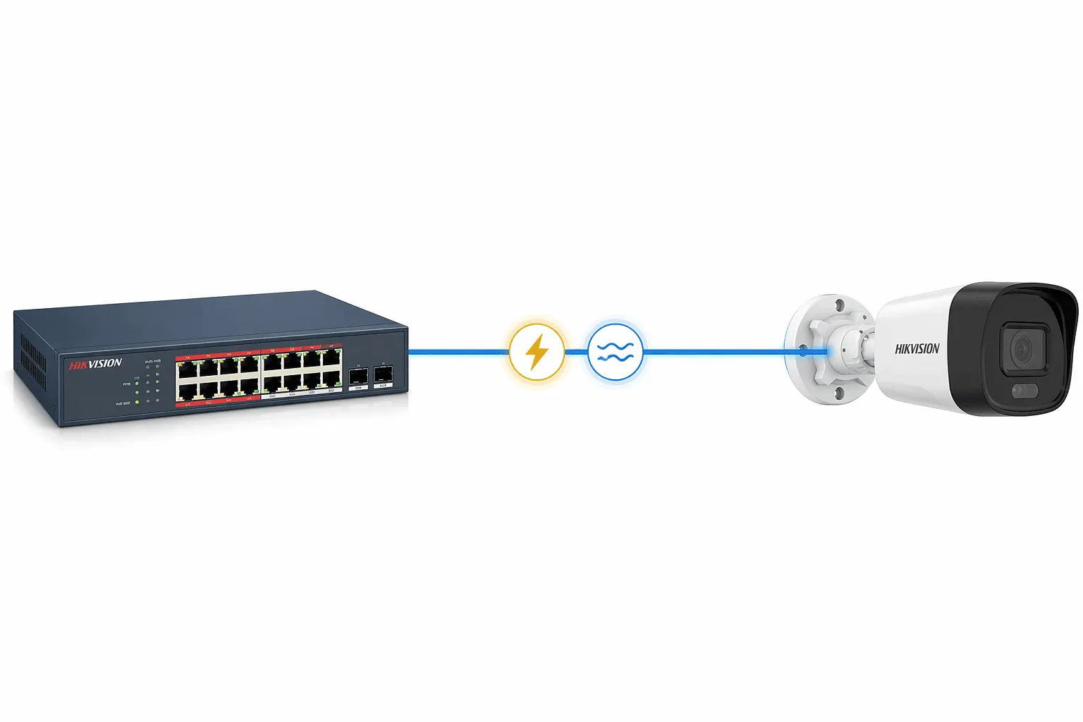 PoE (Power over Ethernet) — это технология, которая позволяет подавать электрическое питание на сетевое устройство (камеру, точку доступа, IP-телефон) через тот же кабель, по которому передаются данные. Вам не нужно прокладывать отдельный провод 220 В или устанавливать розетку рядом с камерой.Принцип работы: