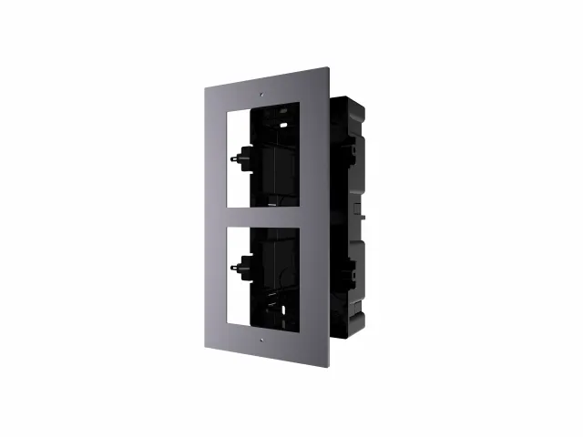 Врезная монтажная рамка на 2 модуля. В комплект входит рамка, крышка, болты и т. п. Врезной монтаж. Монтажное основание изготовлено из пластика. Наружный материал Авиационный алюминий / пластик. Рабочие условия: -40°C – 60°C, влажность 10% – 95%. Размеры: Крышка: 236 х 124 х 44 мм, Монтажная рама: 219 х 107 х 32,7мм.