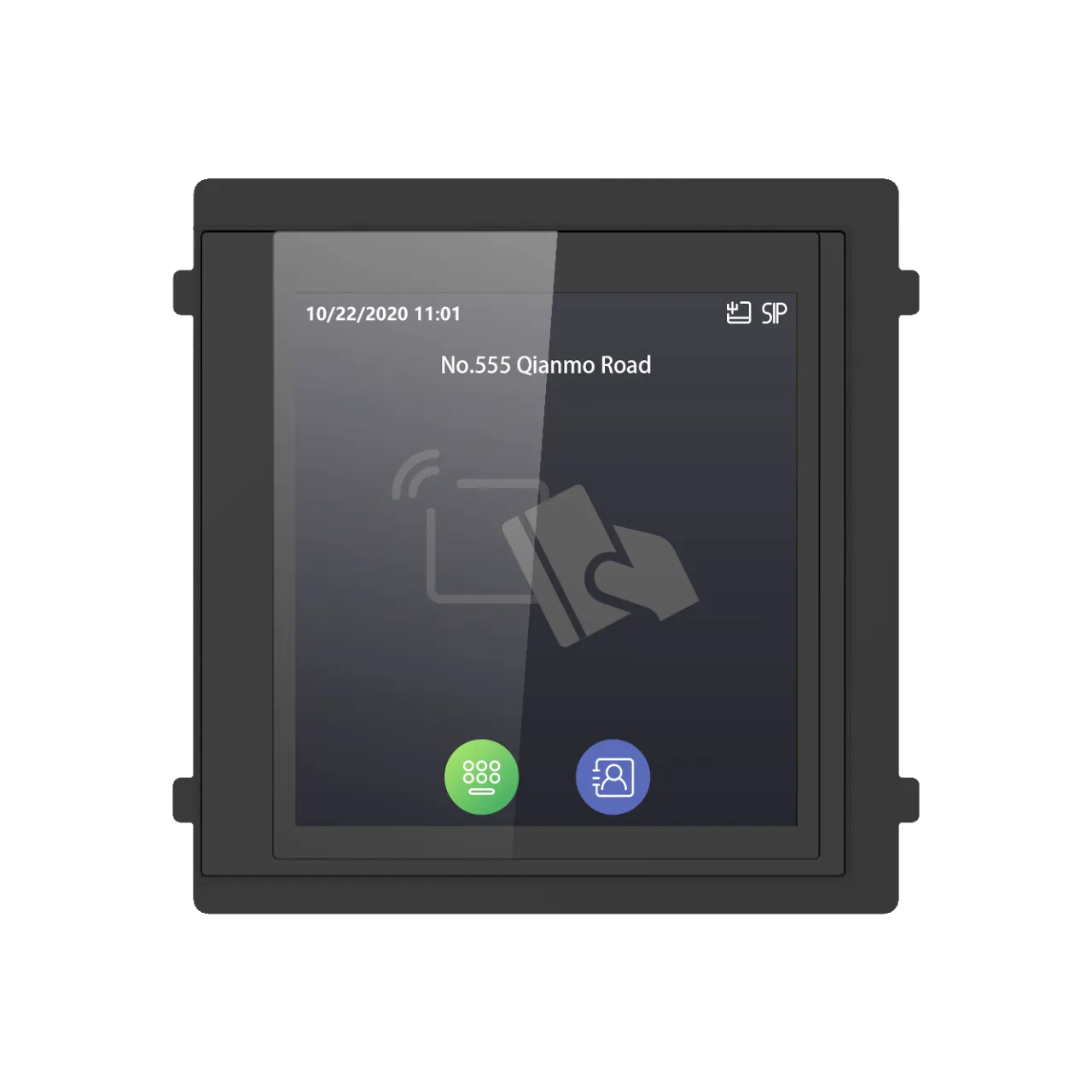 Модуль сенсорного дисплея со считывателем карт Mifare. 4-дюймовый сенсорный экран, IP65, IK8. Расстояние считки карт: 2см. Отображение набора номера, пин-кода, разблокировка карты, список контактов, рекламный дисплей. Рабочие условия:-20 °C -+60 °C. Потребляемая мощность: макс.10 Вт.
