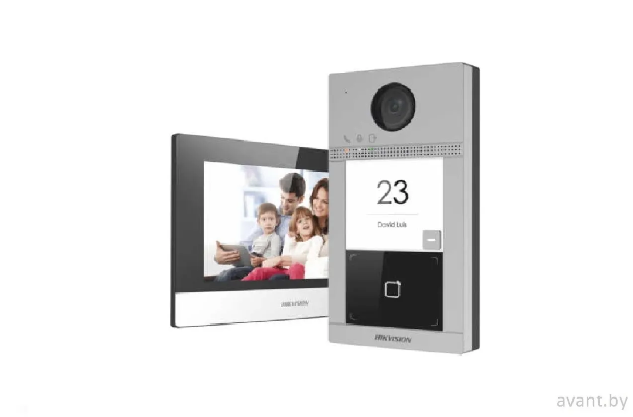 В комплект DS-KIS604-P(B) входят: Wi-Fi вызывная панель DS-KV8113-WME1; Wi-Fi домофон DS-KH6320-WTE1; Два блока питания DC 12 В, 16GB TF card. Вызывная панель DS-KV8113-WME1: PoE, 12В. 2 Мп HD-камера, с углом обзора по Горизонтали: 129°. Подавление шумов и эффекта эхо. Уровень защиты: IK08, IP65, -40 °C to +53 °C. Функции контроля доступа. RS-485; 2 реле для управления замком дверей. Настройка через веб-интерфейс. 2.4 ГГц Wi-Fi. Модуль чтения карт Mifare. Встроенный всенаправленный микрофон. Монитор домофона DS-KH6320-WTE1: Цветной 7-дюймовый TFT сенсорный дисплей. Удобный пользовательский интерфейс V2.0. Разрешение дисплея 1024 x 600. Питание PoE. Хранение сообщений и изображений на TF-карте. 2.4 ГГц Wi-Fi.
