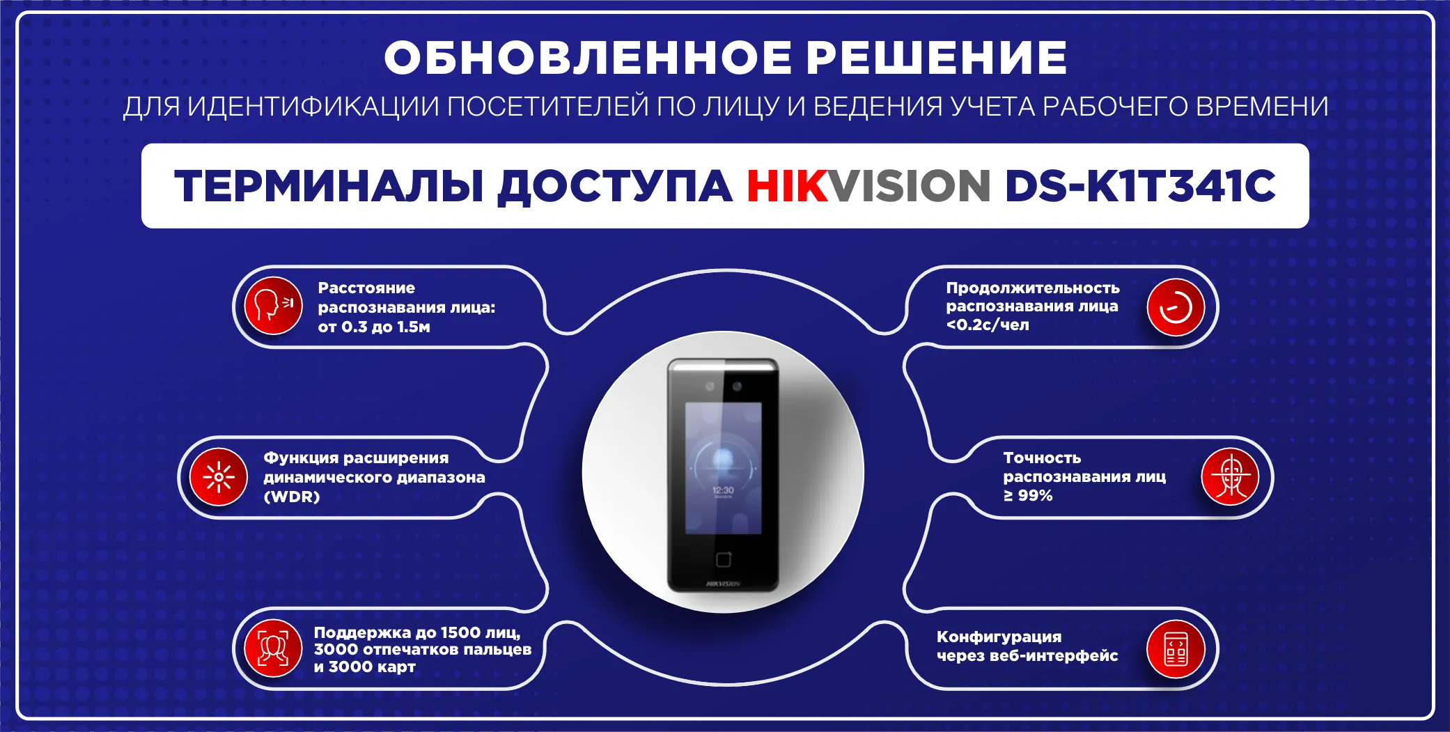 Терминал доступа с функцией распознавания лиц. Операционная система Linux. Алгоритм глубокого обучения. 4,3-дюймовый сенсорный ЖК-экран, разрешение: 272× 480p. Камера 2 МП, Широкоугольный объектив. Скорость распознавания: ≤ 0,2 с/лицо. Точность распознавания лиц: ≥ 99%. Хранение до 3000 лиц, до 3000 карт. Карты Mifare М1. Поддержка протоколов ISAPI и EHome5.0. Двухстороннее аудио с программным обеспечением клиента, дверной станцией, внутренней станцией и главной станцией. Адаптивный сетевой интерфейс 10/100/1000 Мбит/с. RS-485 × 1, Wiegand26\34× 1, USB × 1, Кнопка выхода × 1, Тампер × 1. Конфигурирование через Web клиент. IP65.Питание 12 В постоянного тока 2А. От -30 ° C до + 60 °C.