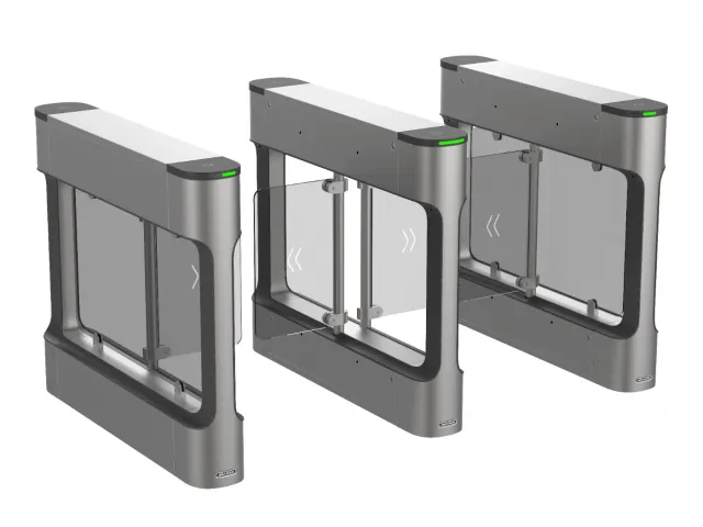 Турникет распашной. 6 пар ИК-детекторов света: проверка разрешений и защита от блокировки. Светодиодный свет указывает направление прохождения. Звуковой и визуальный сигнал тревоги: барьер перестанет работать на некоторое время при обнаружении препятствия при открытии/закрытии барьера. Самообнаружение, самодиагностика и автоматическая сигнализация. Допустимые настройки длительности прохода: система отменит разрешение на проход, если человек не пройдет через полосу движения в течение допустимого времени прохождения. Турникет остается открытым при срабатывании пожарной тревоги: барьер открывается автоматически при срабатывании тревоги. Барьер автоматически откроется при отключении питания. 6 пар инфракрасных датчиков, частота прохода 20-60, ширина полосы 550-1100 мм. Нержавеющая сталь SUS304, толщина: 1,2 мм. Использование для внутреннего и наружного применения.