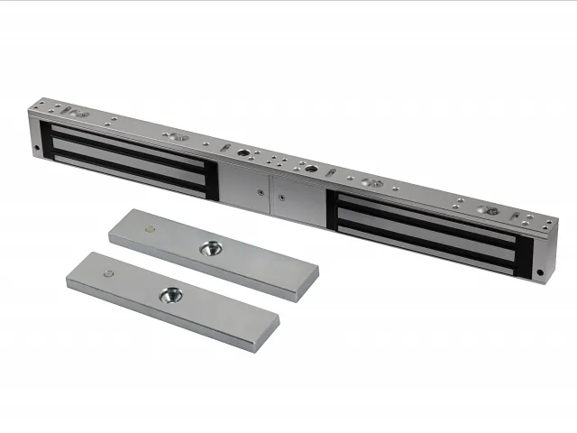 Электромагнитный замок на 2 двери (нагрузка до 300 кг). LED индикаторы: Красный (дверь открыта), Зеленый (дверь закрыта). Выходной сигнал: NC/ COM. Подходящие двери: Деревянные, стеклянные, металлические, огнеупорные. Рабочие условия: -10 °C…+55 °C, влажность 10% - 90%. Нагрузка: 300кг * 2. Материал: Сталь. Размеры электромагнита: 480 × 49 × 25.5мм.