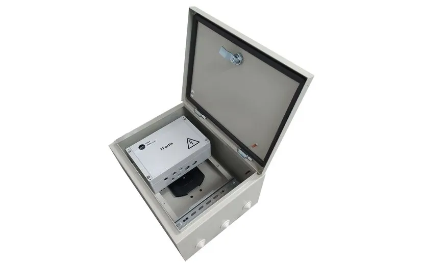 Вид установки -  навесной; Толщина металла -1,5 мм; Тип покрытия - порошковое, шагрень; Цвет - RAL 7032; Степень защиты IP 54; Угол открытия двери - 105°; Размер гильз для сплайс-кассеты - 40 или 60 мм;