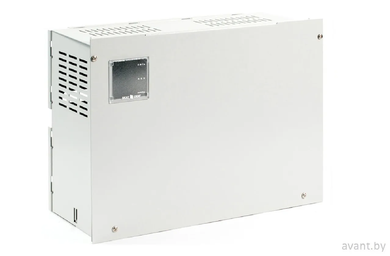 Резервированный источник питания, входное напряжение 150...250 В, выходное напряжение 12,9...14 В, номинальный ток нагрузки 4 А, максимальный ток нагрузки 5 А (до 5 сек), под один или два аккумулятора 12 В 40 Ач, световая индикация режимов работы, диагностические выходы "открытый коллектор", защита от короткого замыкания, защита аккумулятора от глубокого разряда, диапазон рабочих температур -10...+40°С, габаритные размеры 445х328х193 мм