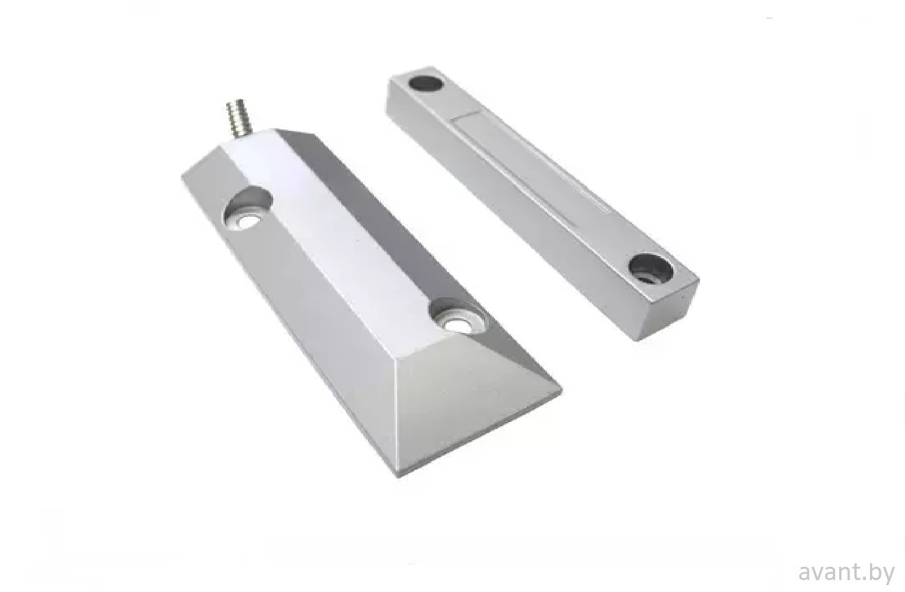 Извещатель охранный магнитоконтактный, накладной. Алюминиевый корпус. Подвод кабеля в металлорукаве. Расстояние размыкание/замыкание 76/60 мм. IP66.