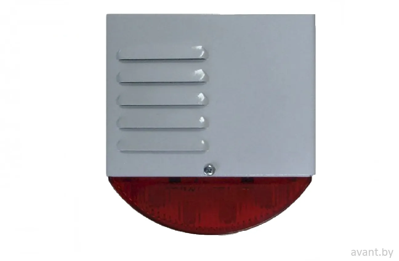Оповещатель светозвуковой. Красная лампа. 95-110 дБ. Наружной установки. IP41. Корпус - металл. Питание 9-15 -40. +55°C, 130х113х43мм.
