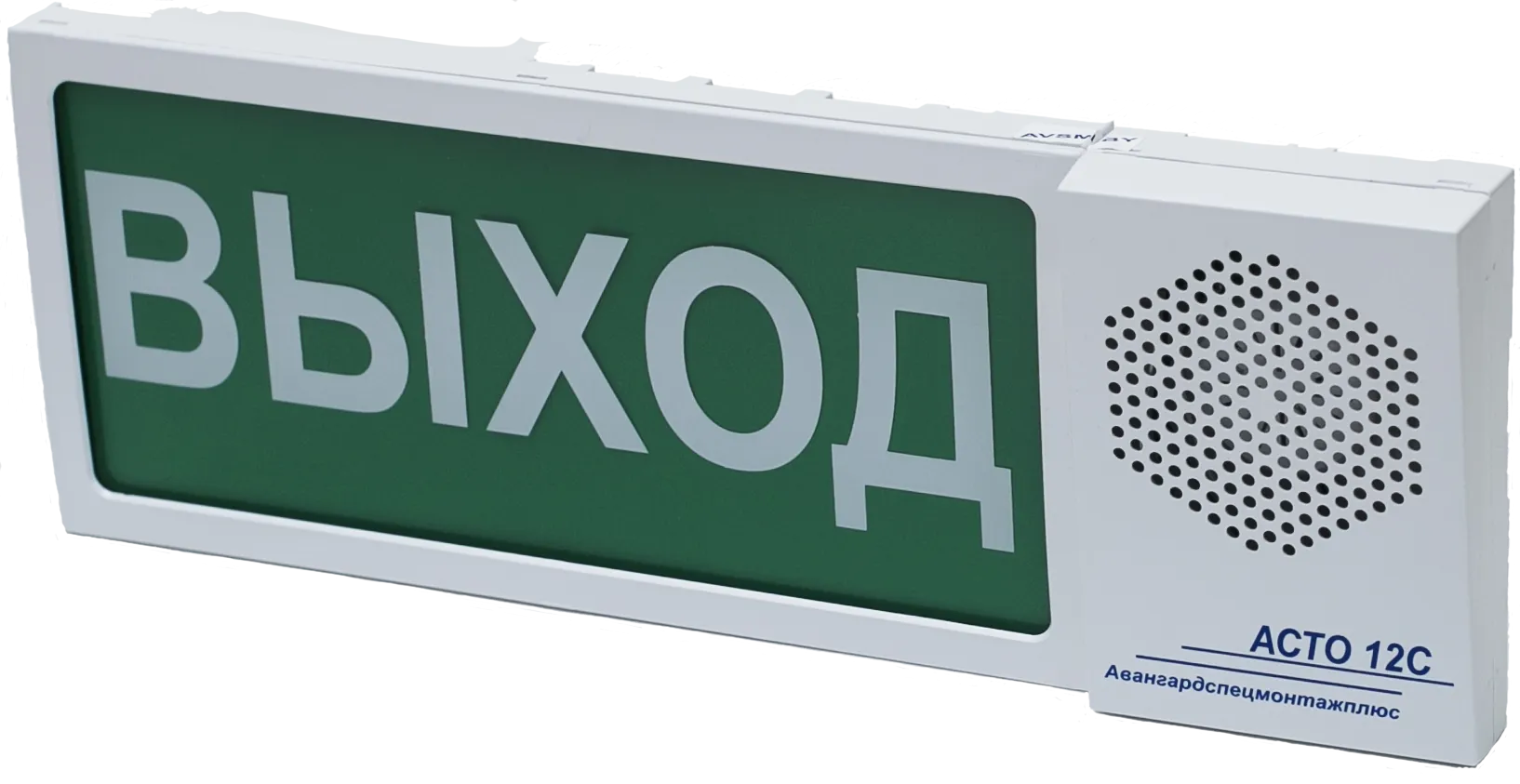 Оповещатели пожарные свето-речевые «АСТО 12Р» предназначены для визуального и звукового оповещения, предупреждения об опасности, для указания путей эвакуационных выходов, в качестве исполнительного элемента системы оповещения. 24В, 80мА, 74Дб, IP-41, не более 310х130х45 мм ВЫХОД