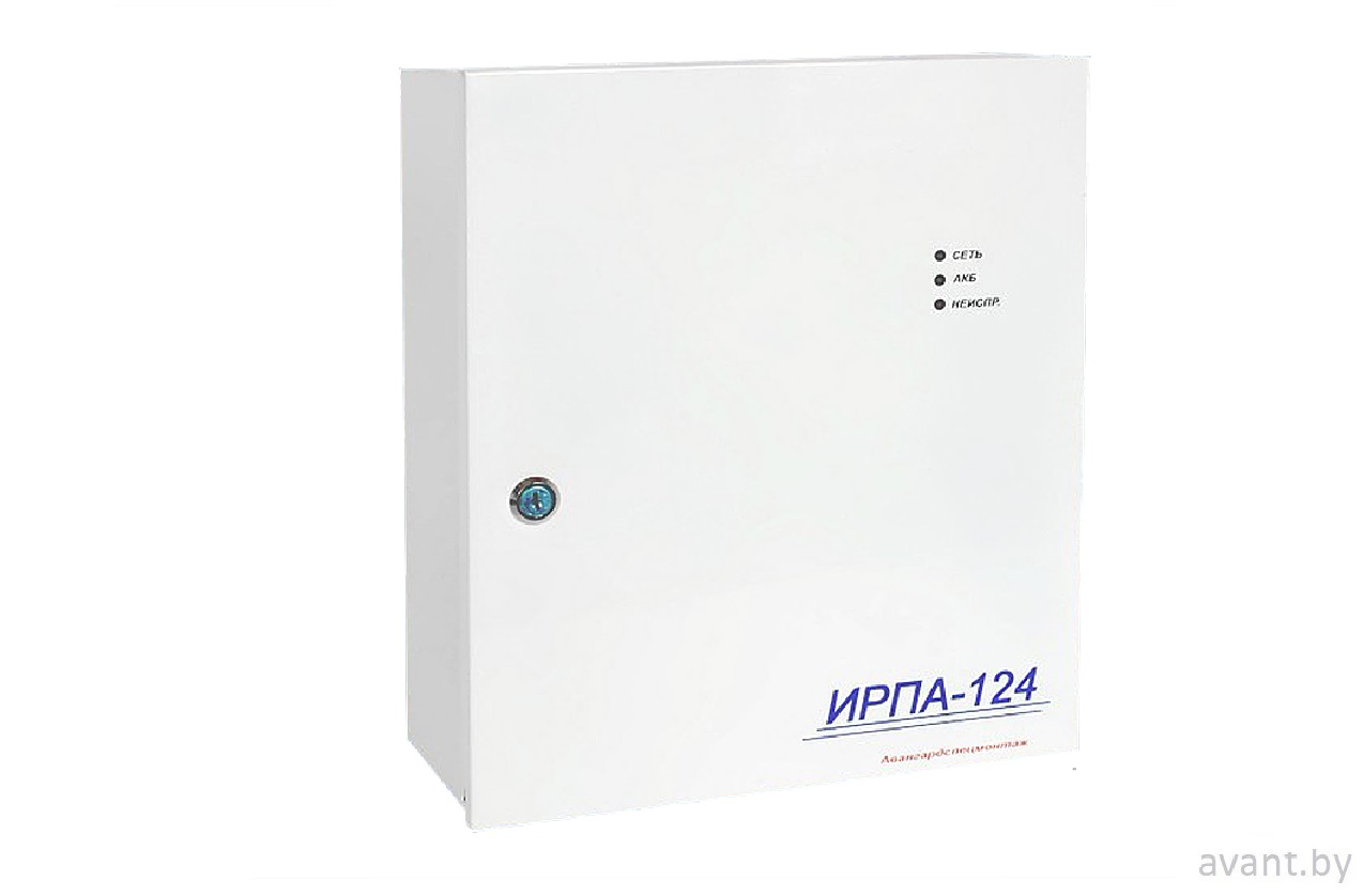 Источник питания «ИРПА124/2-3» предназначен для обеспечения бесперебойным электропитанием устройств пожарной сигнализации и автоматики при отсутствии сетевого или внутреннего напряжения питания. Устройство работает от сети переменного тока 187-253 В частотой 50±0,5 Гц и использует две аккумуляторные батареи номинальным напряжением 12 В емкостью до 28 А/ч в качестве резервного источника. Потребляемый ток от сети при напряжении 187 В с разряженными АКБ и нагрузке 3 А не превышает 1 А, а максимальная потребляемая мощность составляет 150 Вт. Ток потребления от АКБ при нагрузке 3 А не более 3,5 А, а собственное потребление без нагрузки — не более 50 мА. Максимальный ток заряда аккумуляторов — 0,7 А. Номинальное выходное напряжение при работе от сети с заряженными АКБ составляет 27,4±0,4 В, а минимальное напряжение при разряженных АКБ без сети — 21±0,8 В. Номинальный ток нагрузки не превышает 3 А, а максимальный кратковременный ток (до 2 минут) — не менее 7 А. Защита от перегрузки срабатывает при токе 3,5±0,2 А при работе от сети без АКБ и 6 А при работе от АКБ или от сети с установленными аккумуляторами. Пульсации выходного напряжения не превышают 400 мВ. Время готовности к работе после включения — не более 3 минут. АКБ отключаются от нагрузки при минимальном суммарном напряжении 21±0,5 В, а остаточная емкость 20% воспринимается как неисправность. Наличие АКБ определяется при минимальном суммарном напряжении 16,0±0,5 В. Время полного заряда двух батарей 12 В 45 А/ч — не более 72 часов. Устройство оснащено реле состояния с нормально замкнутыми контактами, размыкающимися при неисправностях, отсутствии сети, перегрузке или вскрытии корпуса. Контакты реле коммутируют ток до 0,1 А при напряжении до 30 В. Габаритные размеры — 315×375×165 мм, масса без АКБ — не более 4,8 кг. Диапазон рабочих температур: от +5°С до +40°С при влажности до 95% при +30°С. Степень защиты оболочки — IP30, устойчивость к электромагнитным помехам — вторая степень, устойчивость к вибрационным нагрузкам — группа L3.