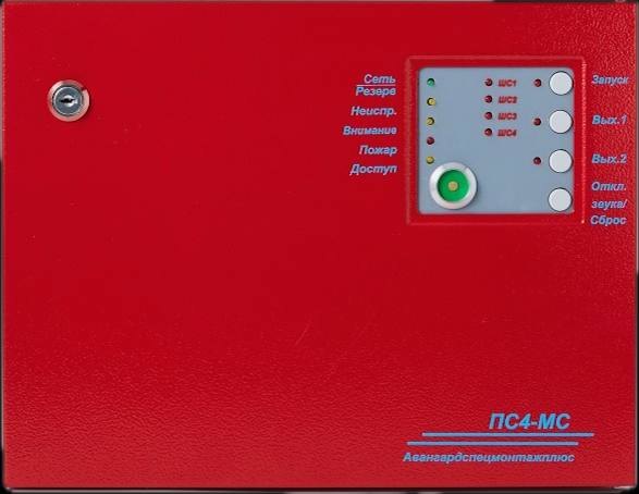 Прибор приемно-контрольный пожарный и управления «ПС4-МС» предназначен для организации систем пожарной сигнализации, управления устройствами оповещения и эвакуации, а также формирования команды на запуск систем речевого оповещения. Прибор контролирует 4 шлейфа пожарной сигнализации и оснащен двумя выходами управления устройствами оповещения с контролем на обрыв и замыкание, каждый из которых рассчитан на максимальный ток 2 А. Также имеются один выход состояния «Неисправность», один выход состояния «Пожар» и три программируемых релейных выхода для управления технологическим оборудованием. Питание прибора осуществляется от сети 220 В, 50±0,5 Гц, с максимальной потребляемой мощностью не более 70 Вт. При пропадании сетевого напряжения прибор автоматически переключается на питание от встроенного аккумулятора, осуществляет его автоматическую зарядку и контролирует его состояние, обеспечивая защиту от замыканий и переполюсовки. При разряде АКБ до напряжения 10,5±0,2 В прибор переходит в «спящий» режим с контролем напряжений каждые 2 секунды. Потребляемый ток от внутреннего источника питания в дежурном режиме не превышает 60 мА, а в режиме «Пожар» — 185 мА. Прибор имеет встроенный звуковой сигнализатор. Габаритные размеры прибора не превышают 330×255×105 мм, с отсеком для аккумуляторной батареи размером 185×185×85 мм (емкость АКБ до 20 А/ч, 12 В). Масса прибора не более 2,8 кг. Диапазон рабочих температур: от 0°С до +40°С. Срок службы — не менее 10 лет, вероятность отказа за 1000 часов работы — не более 0,01. Степень защиты оболочки — IP30, класс устойчивости к электромагнитным помехам — 2, группа исполнения по устойчивости к механическим воздействиям — LX.