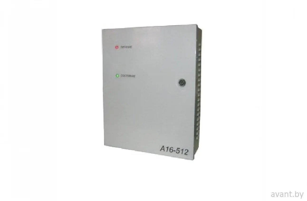 Прибор приёмно-контрольный охранный А16-512 осуществляет контроль состояния 16-ти шлейфов сигнализации с возможностью расширения до 48-ти и обеспечивает индикацию их состояния на выносной панели управления. Он имеет возможность передачи своего состояния по различным каналам связи при использовании дополнительных модулей согласования и адаптеров, а также обеспечивает бесперебойное питание внешних устройств стабилизированным напряжением 12В. Питание прибора осуществляется от сети переменного тока напряжением от 187 до 242 В частотой 50±1 Гц или от резервной АКБ емкостью 17 А*ч с напряжением 12±2 В. Потребляемая мощность от сети не превышает 60 В*А, а ток потребления от АКБ составляет не более 180 мА в дежурном режиме и 193 мА в тревожном режиме. Напряжение постоянного тока на выходах для питания внешних устройств находится в диапазоне от 10 до 14 В, при этом максимальный выходной ток для питания внешних устройств составляет 2x1 А, а для свето-звуковых устройств — 2x0,5 А. Максимальный суммарный выходной ток для питания прибора, внешних устройств и СЗУ равен 3 А. Максимальный ток заряда аккумулятора при разряде до 10В составляет 1,8 А в режиме постоянного заряда. Информационная емкость прибора в базовой комплекции составляет 16 шлейфов сигнализации. Время реакции шлейфа сигнализации программируется и может быть равно 60, 250, 500 или 750 мс при цикличности опроса шлейфов 16 мс. Номинальное напряжение в шлейфах равно 12 В. Прибор поддерживает до 48 программируемых независимых зон постановки и снятия. Количество встроенных релейных выходов для управления внешними устройствами — 3, а максимальное количество релейных выходов при подключении релейных модулей и модулей расширения достигает 25. Максимальное значение постоянного тока, коммутируемого контактами реле при напряжении 24В, не превышает 3 А. Прибор имеет один независимый канал считывания ключей пользователей, который может быть расширен до 24 каналов при использовании трех модулей АМС-8. Максимальное количество электронных ключей в памяти прибора составляет 256 шт. Диапазон рабочих температур — от минус 20 до плюс 40 °С, а габаритные размеры — 450х350х110 мм.