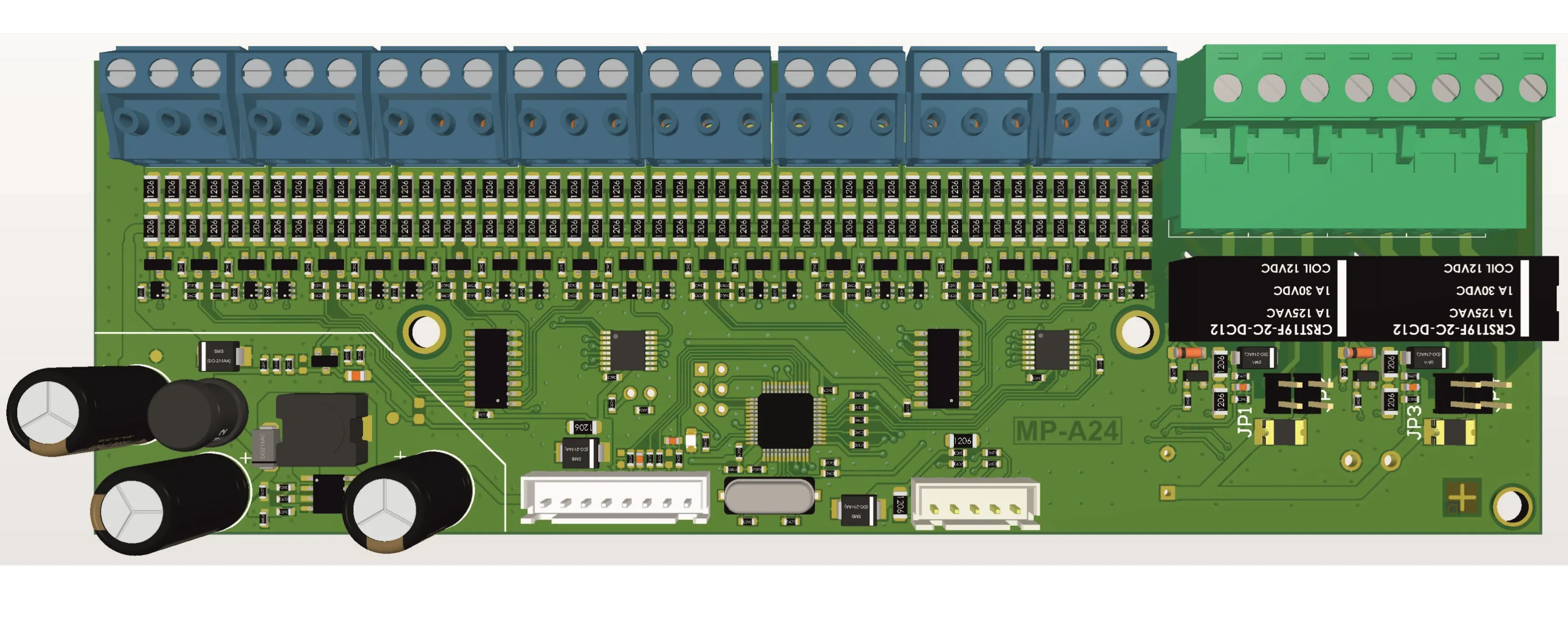 Модуль расширения МР-А24/8 предназначен для установки в корпус приборов приемно-контрольных серии "А24" и обеспечивает увеличение емкости приборов на два релейных выхода с возможностью контроля целостности цепи управления и, в зависимости от исполнения, на 8 контролируемых шлейфов. К ППК серии "А24" можно подключить только один такой модуль. Модуль контролирует 8 шлейфов и имеет 2 встроенных программируемых релейных выхода с возможностью контроля целостности подключаемой линии управления. Характеристики встроенных релейных выходов составляют 12 В/ 2А или 24 В/ 2А по постоянному току. Номинальное напряжение в шлейфе равно 24 В. Максимальный ток потребления от прибора не превышает 120 мА в дежурном режиме (без учета внешних подключений) и 150 мА при включении двух реле (без учета внешних подключений). Модуль работает в диапазоне температур от −40 до +40 °C при отсутствии конденсации.
