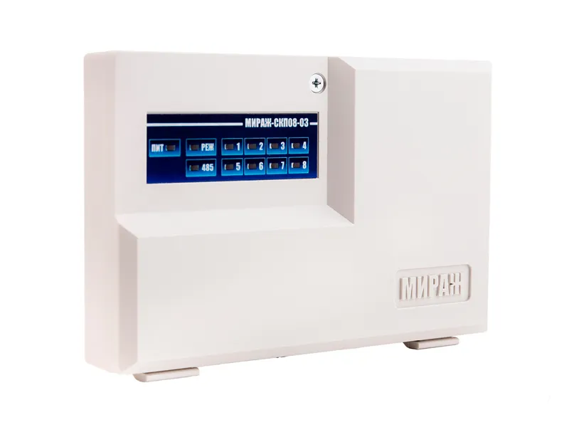 8 шлейфов ОПС, питание 1«Неисправность», «Сирена»), порт Тouch Мemory, внешнее питание 12В. Подключение к контроллерам STEMAX MX810/МХ820, Мираж-GSM-М8-03 по интерфейсу RS-485.2 В, порт Тouch Мemory, работа с приборами Стемах, Мираж. Производитель устройств: НПП "Стелс" (гарантия 5 года); Электропитание основное: 12 В; Ток потребления в дежурном режиме: в режиме ШС 4 В 0,04 А; в режиме ШС 24 В 0,15 А; Диапазон рабочих температур: от –40 до +55 °С; Напряжение в ШС: 4; 24 В; Габаритные размеры корпуса: 140 x 90 x 25 мм