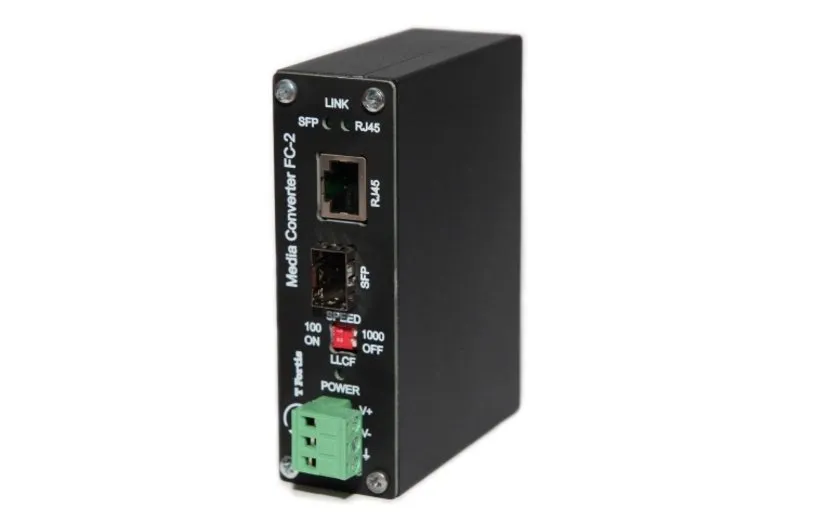 Медиаконвертер FC-2 осуществляет преобразование интерфейсов оптика – медь. Медиаконвертер TFortis FC-2 имеет медный порт с автоматическим определением скорости (10/100/1000) и SFP-слот с возможностью выбора скорости с помощью переключателя, что позволяет работать как с гигабитными, так и с 100-мегабитными коммутаторами TFortis. Имеет крепление на DIN-рейку