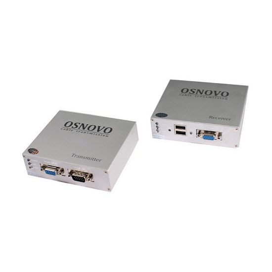 Комплект (приемник + передатчик) для передачи VGA, Клавиатура, "Мышь" на расстояние до 100 м. Разрешение до1920x1440. Разъемы: RJ-45 (для подключения приемника к передатчику), 2 х USB (для подключения клавиатуры и мыши), 15-Pin (VGA). Используется с устройствами на базе ОС Windows, с DVR Standalone на базе OC Linux; БП DC9V/1A- 2шт ( в комлекте); передатчик-130х100х30 мм, приемник -130х100х30 мм. 0... +55 С.