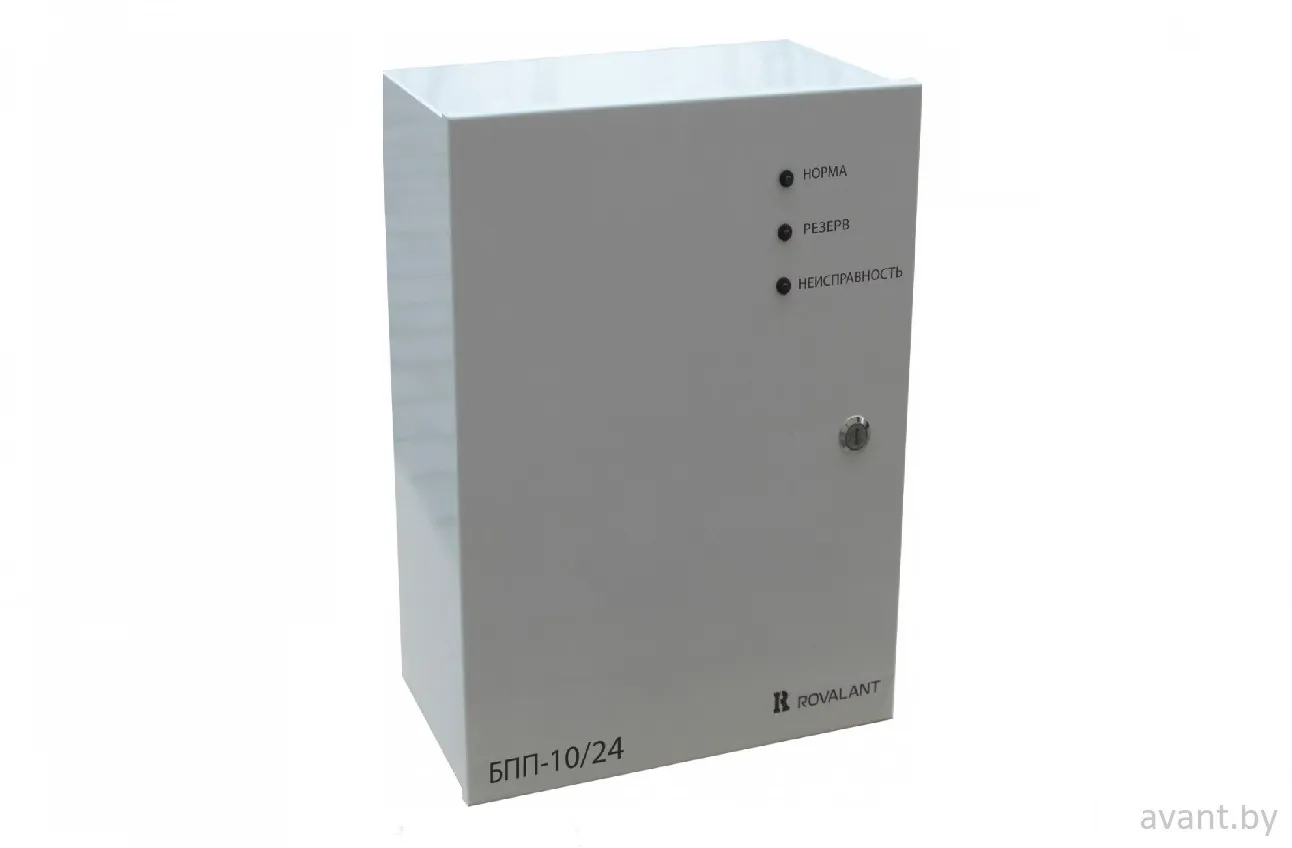 Блок бесперебойного питания ББП-10/24. Номинальное напряжение питания - 187-242В, 50-60Гц. Потребляемая мощность, ВА, не болеее - 100ВА.