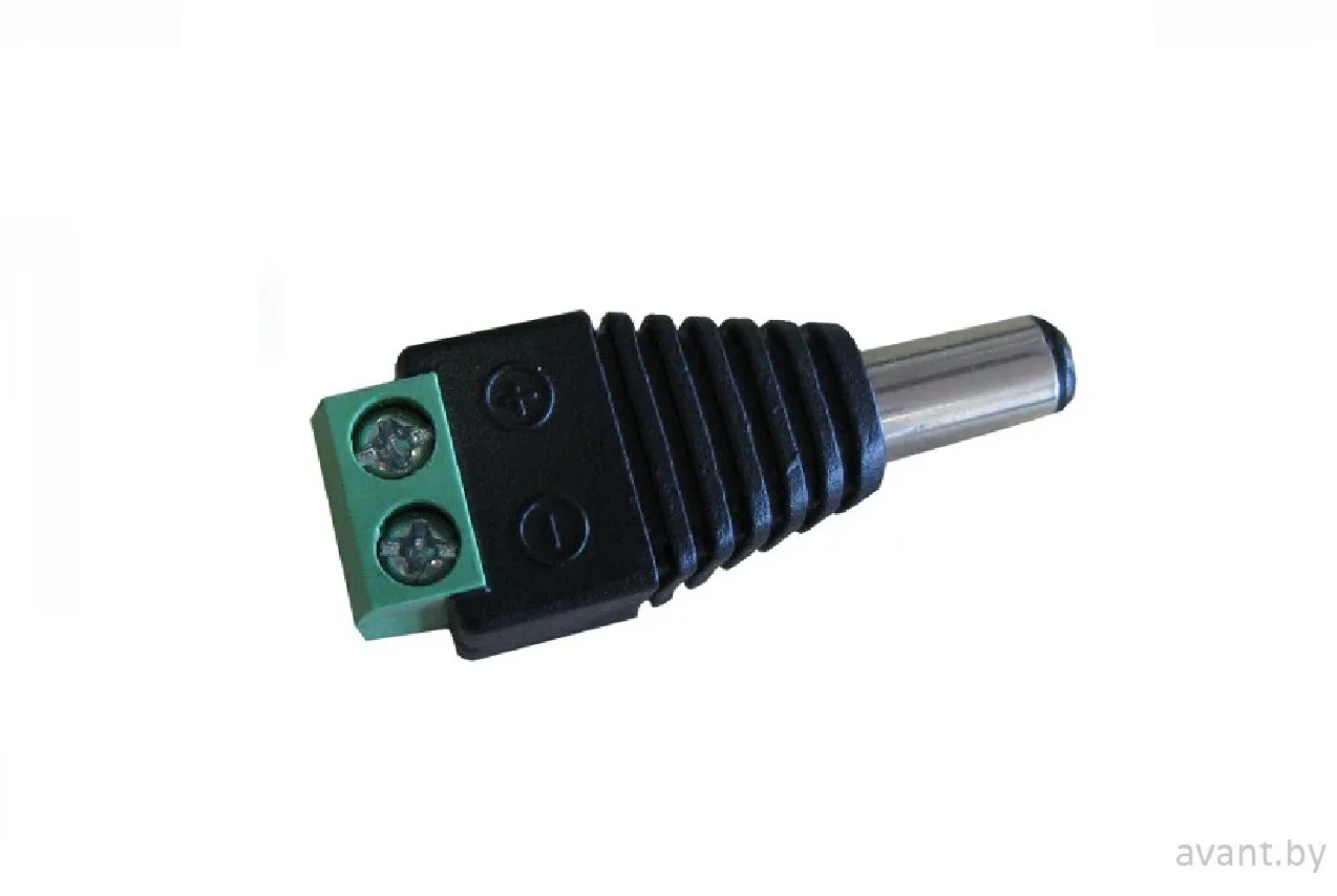 Коннектор питания штырьковый 2.1x5.5x10mm, 2-pin клеммная колодка под винт, тип "папа", предельный ток 2А при напряжении 42V.