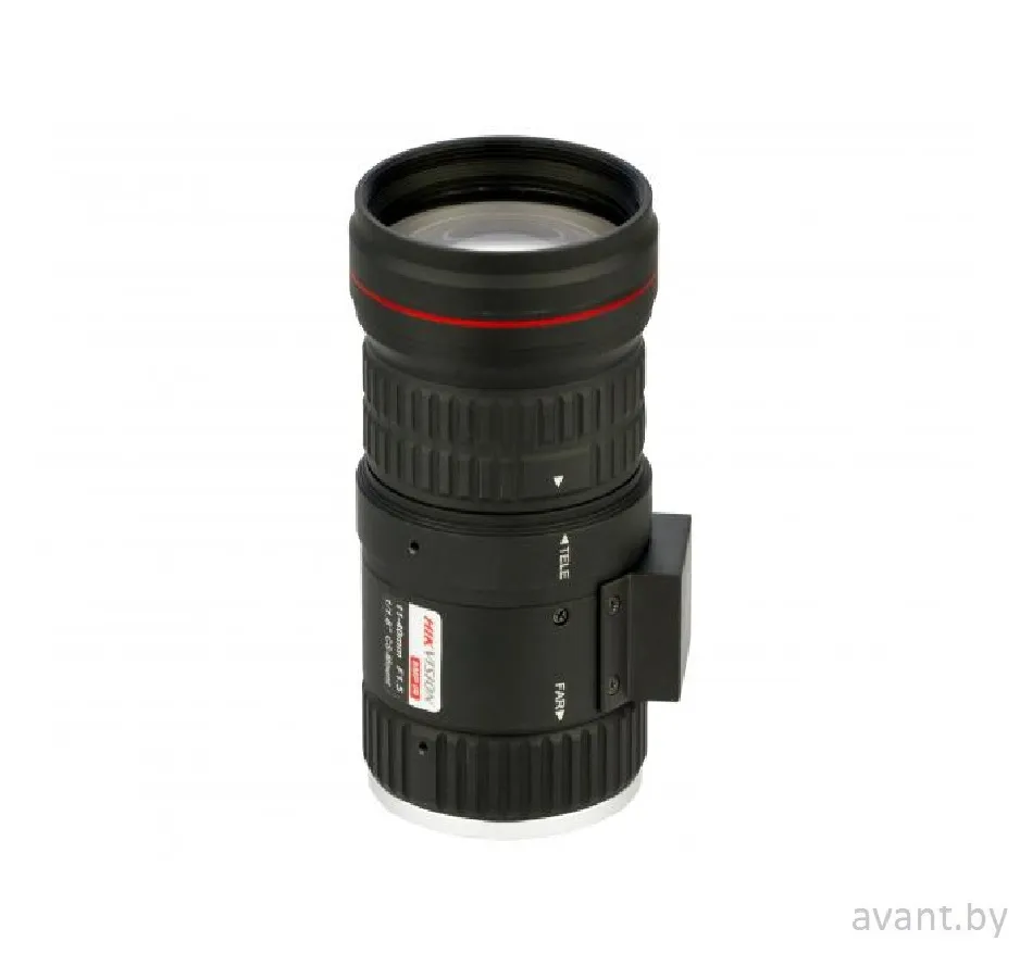 Вариофокальный 8Мп объектив. Фокусное расстояние: 11-40мм. 1/1.8": диагональ: 45.2°-13.8°, горизонталь: 36.7°-11.5°, вертикаль: 23.9°-7.6° 1/2": диагональ: 41.7°-12.8°, горизонталь: 35.8°-11.2°, вертикаль: 19.6°-6.3°. Вес 271.1гр, рабочая температура: -10°C…50°C.