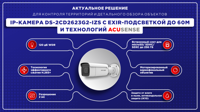 Сегодня на обзоре 2 Мп уличная цилиндрическая IP-камера DS-2CD2623G2-IZS с технологией AcuSense!
