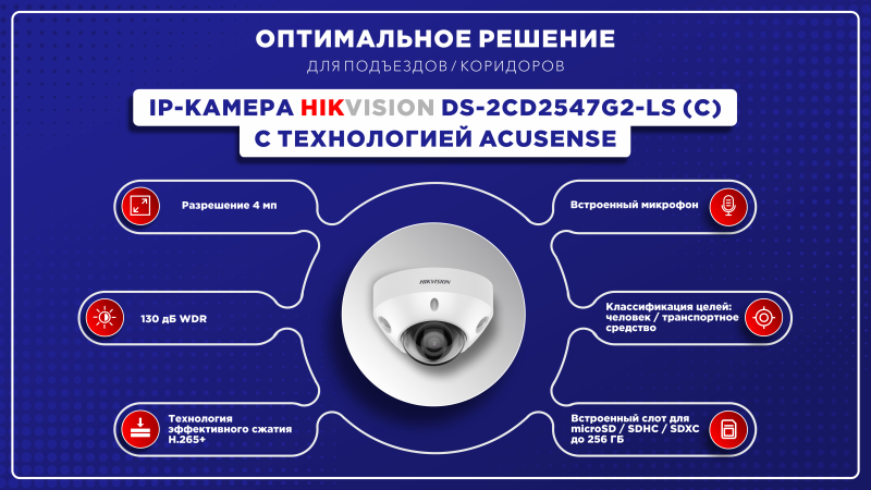 Представляем вашему вниманию новинку от Hikvision – DS-2CD2547G2-LS(С) с технологией AcuSense и ColorVu. Сценарии применения данной камеры: коридоры, подъезды, лифты.