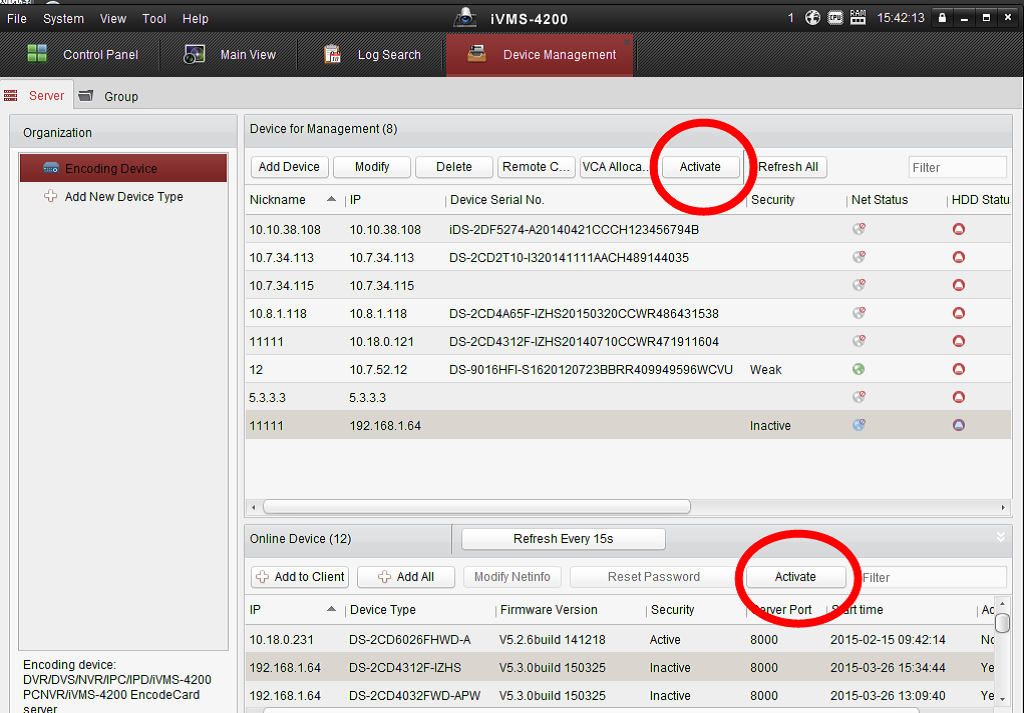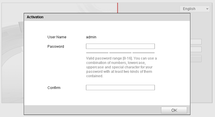1. Заменить устаревшую версию программы SADP Видео камеры с версией от V5.3.0, DVR/NVR с версией от V3.3.0 больше не имеют пароль по умолчанию. Подключая устройства в первый раз, пользователи должны активировать устройство - обязательно установить пароль. Уровень секретности пароля должен быть более высоким, чем “12345” (правила пароля, и уровни см.в приложении).